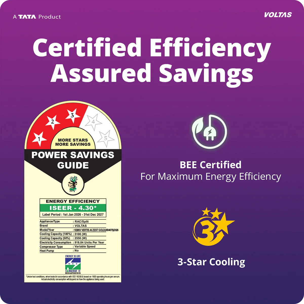 When you need instant relief, Turbo Cooling delivers a quick temperature pull‑down. Stay comfortable even during peak summers with High Ambient Cooling up to 52°C. Enjoy smoother airflow with 4‑Way Swing, and maintain a peaceful environment with Super Silent Mode. Ice Wash Technology helps keep coils cleaner, while the Filter Clean Indicator ensures easy maintenance. With its 3 Star rating, Vertis AI Zest Gold combines smart intelligence, high efficiency, and advanced comfort every day, all season.