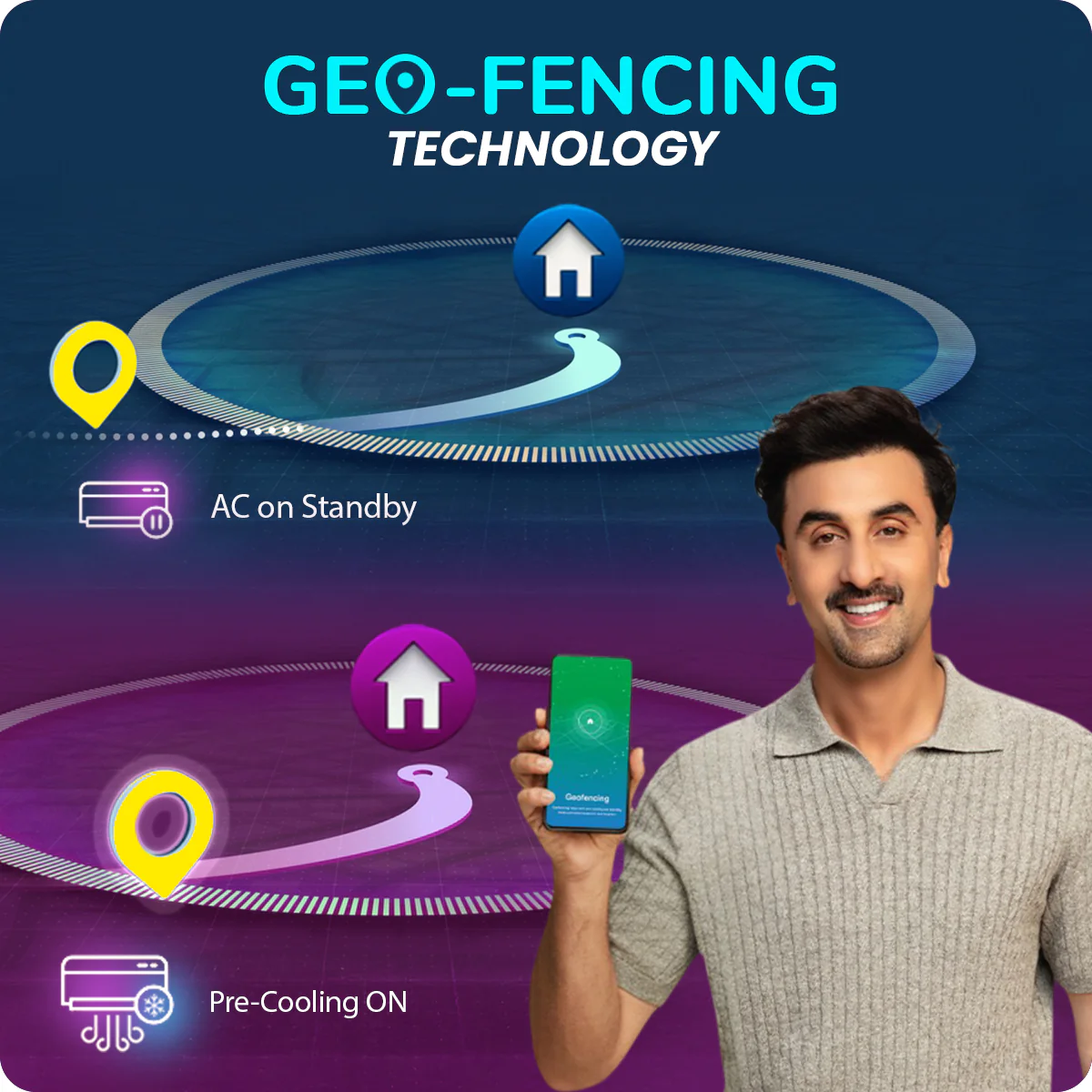 Meet the Voltas Vertis AI Zest Gold 1 Ton 3 Star Inverter Split Room AC-your smarter, intuitive cooling partner. Powered by Smart AI RAC, it learns your usage patterns and adjusts cooling automatically for optimum comfort. With AI Adaptive Cooling, it senses room conditions and sets the ideal temperature without manual input. The Geo‑Fencing feature allows the AC to switch modes or turn on/off based on your proximity, giving you a hands‑free experience every time you arrive or leave home. Control your energy use better with the Energy Manager, and fine‑tune cooling with 6 Step Adjustable Mode, matching real‑time room load for efficiency.