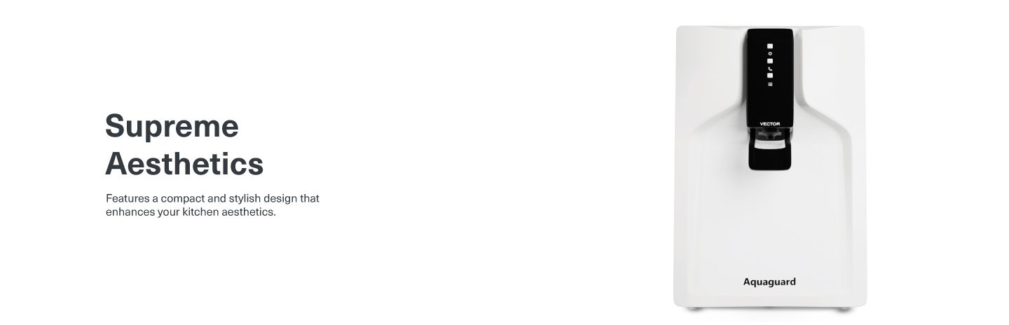 Aquaguard Vector delivers pure & safe water free of Bacteria, virus & Protozoa & chemical impurities through its superior RO & UV technology. It instantly charges water with essential minerals like Calcium and Minerals.