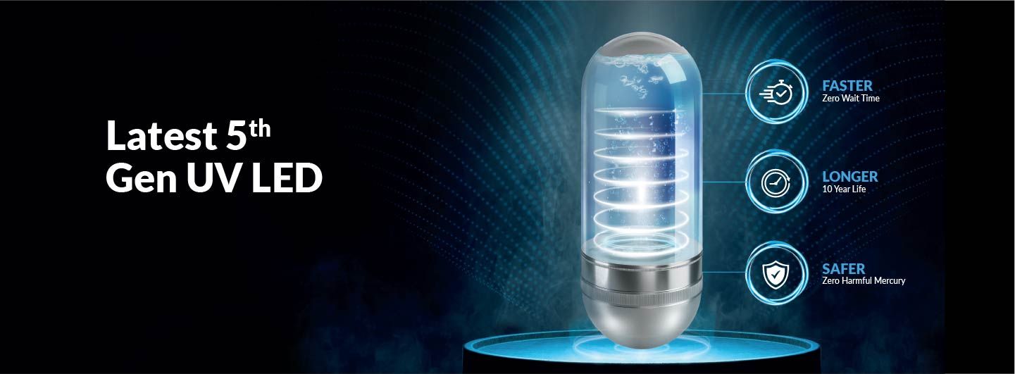 - 5th Gen UV LED: Delivers instant purified water with no wait time, contains no harmful mercury, and lasts up to 10 years.
