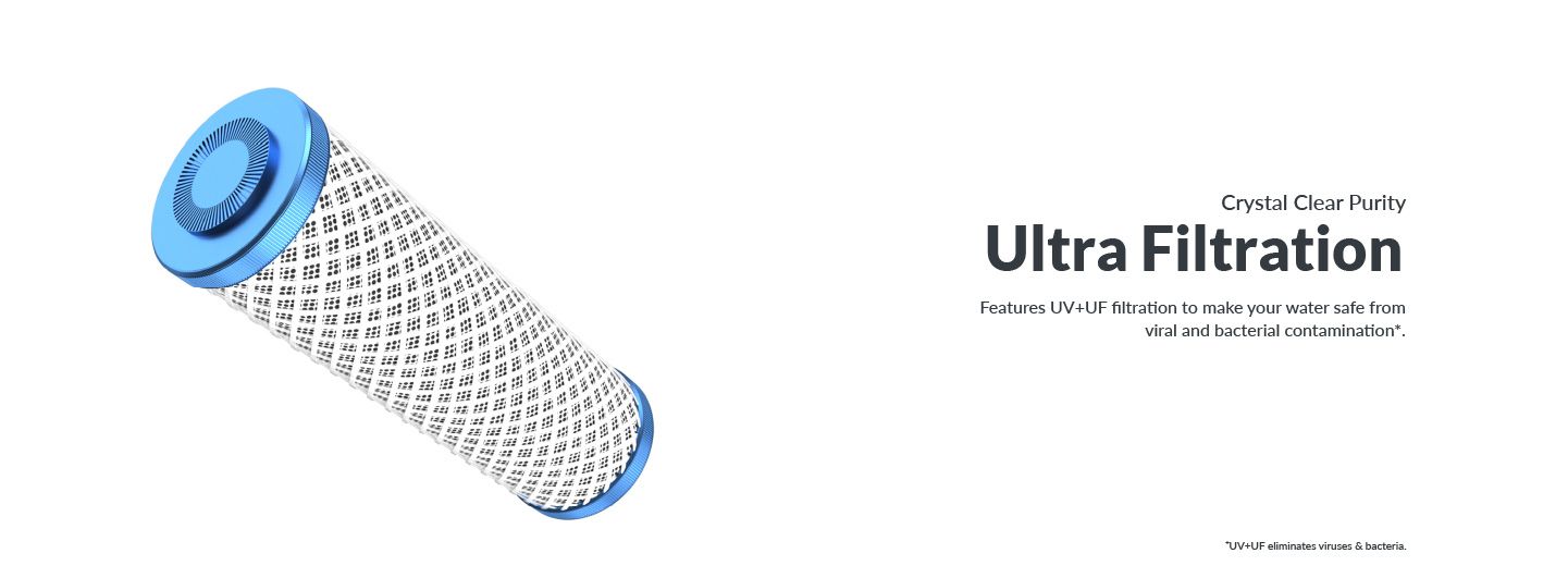 Experience the pinnacle of advanced water purification with the Aquaguard Slimtech Glass UV Storage Copper Water Purifier. Featuring cutting-edge 8-stage purification, this technology ensures 99.9999% bacteria removal and 99.99% virus reduction.