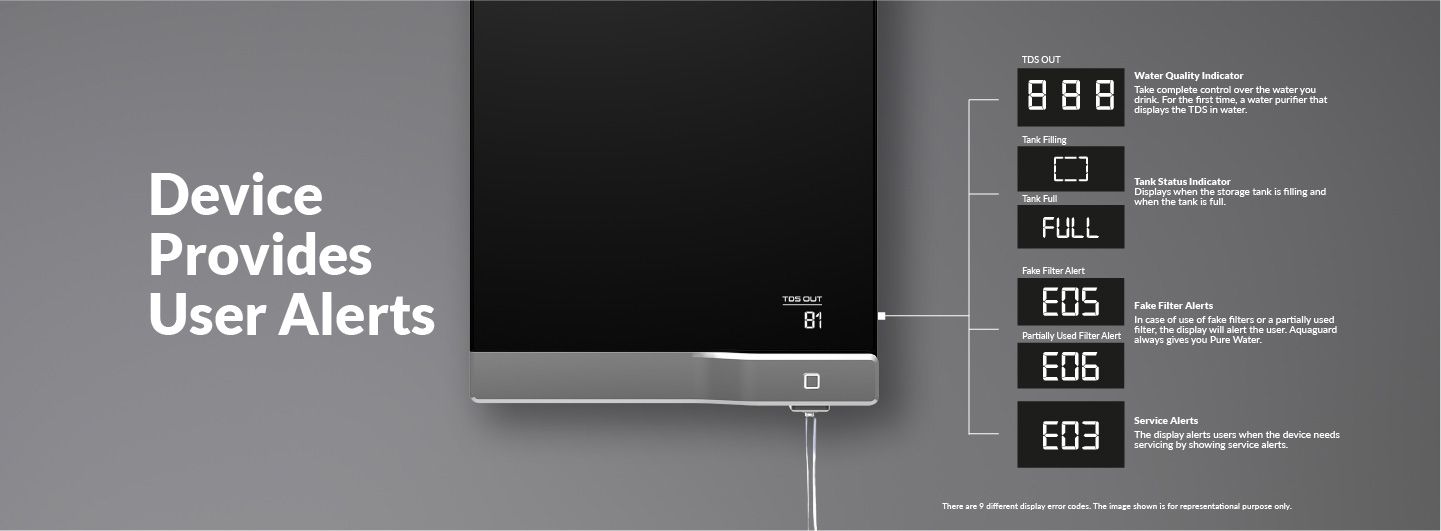 - Intelligent Water Quality Indicator – It is the first purifier to offer real-time TDS readings for both input and purified water, ensuring you receive the purest water possible.