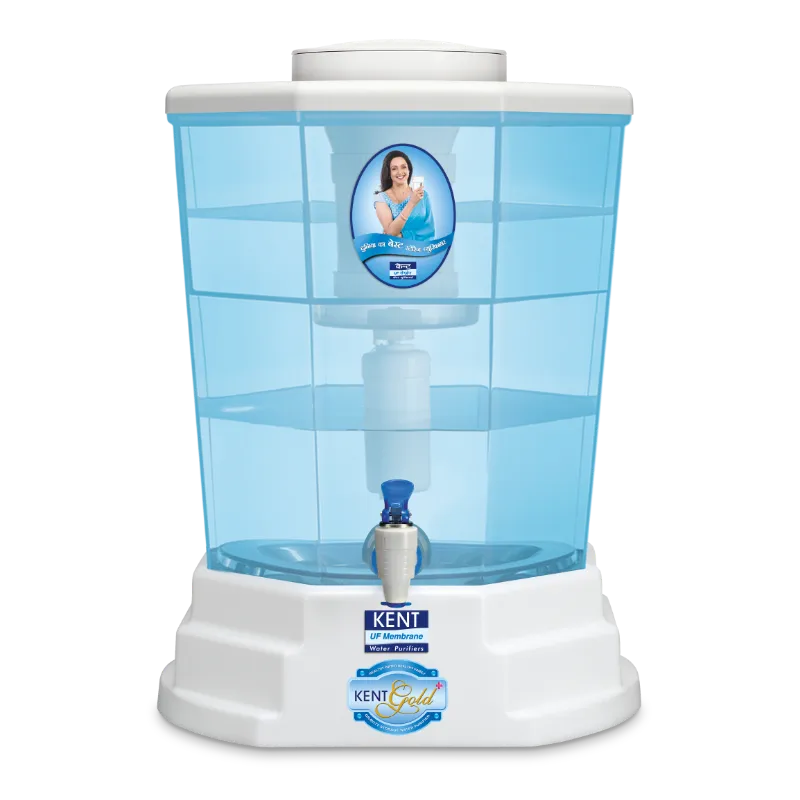 KENT Gold+ is a gravity based water purifier that purifies water better than boiled water with hollow fibre UF membrane that does not allow any bacteria and cysts to pass through. This makes drinking water pure without any use of chemicals like chlorine, bromine, or iodine. This purifier is best suitable for tap and municipal corporation water supply.