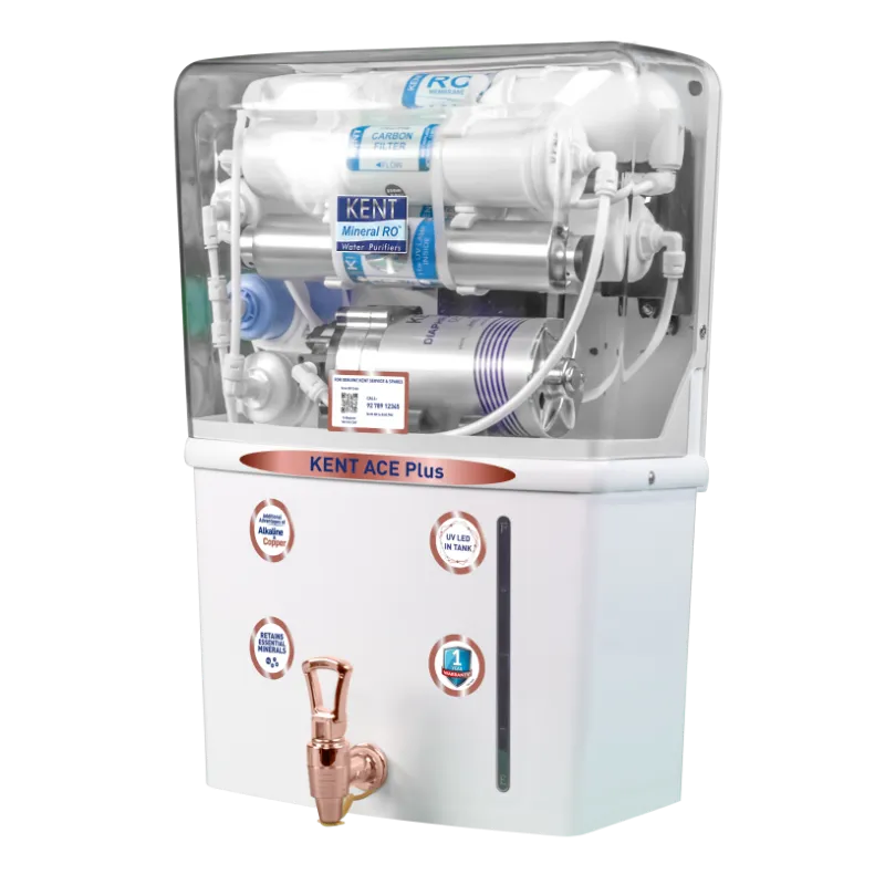 Bring home KENT Ace Plus, the most advanced water purifier of Ace Series with a host of extra features. This top of the line includes Mineral ROTM Technology and multiple purification process of RO+UV+UF+TDS Control+Alkaline+Copper to ensure pure, mineral-rich, and alkaline drinking water with pH levels up to 9.5 for healthy living. Also, it comes with Zero Water Wastage Technology that recirculates the rejected water back from the purifier to the overhead tank, leading to no wastage.