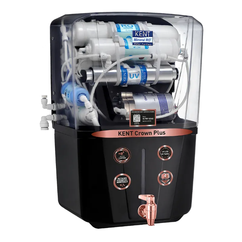 KENT Crown Plus-B uses KENT’s Mineral ROTM Technology to retain essential minerals in the purified water, making it an ideal choice to get pure and safe drinking water. To make water pure and rich in essential nutrients, the multiple purification process of RO+UV+UF+TDS Control + Copper removes even dissolved impurities, bacteria, and viruses. Additionally, it has a UV LED light in its storage tank to keep purified water pure and free of bacteria for a longer duration. KENT Crown Plus-B comes in a stylish black shade that’s sure to amplify the modern décor of your kitchen. It works best for purifying brackish, tap, and municipal corporation water in Indian residences and workplaces.