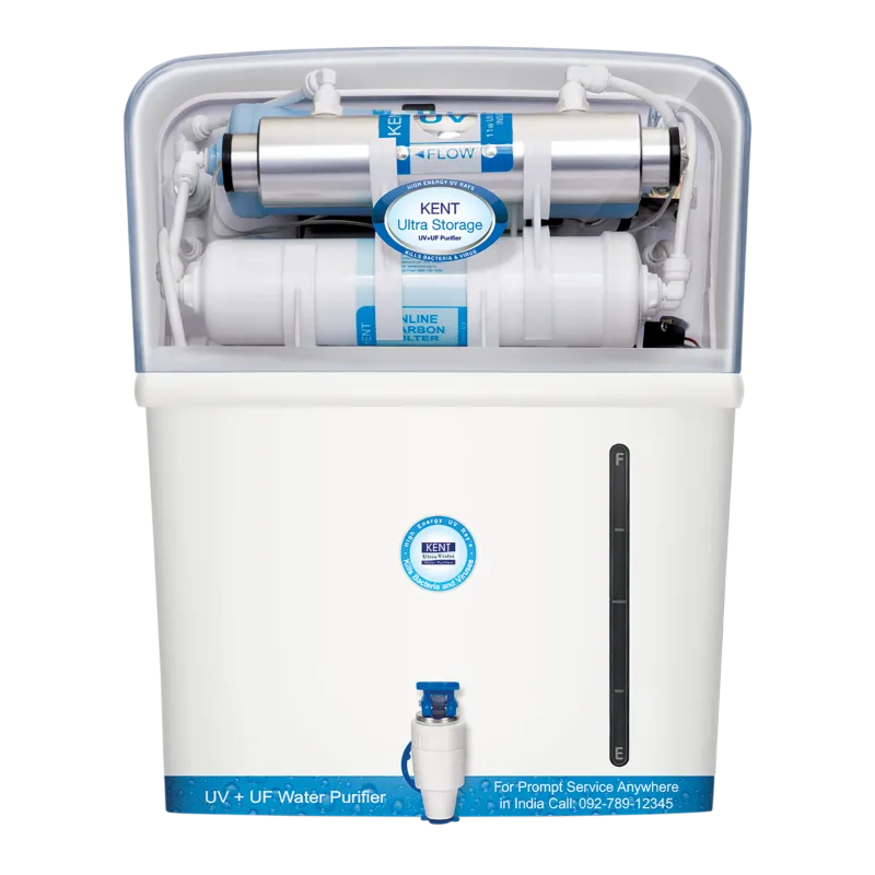 It uses double purification that takes place first by UV, followed by hollow fibre UF membrane to completely filter out dead bacteria, viruses, and cysts, thereby providing pure & safe drinking water.